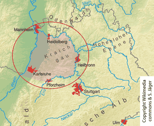 Das Arbeitsgebiet im Verhältnis zur Lage des Kraichgaus, wie er heute verstanden wird